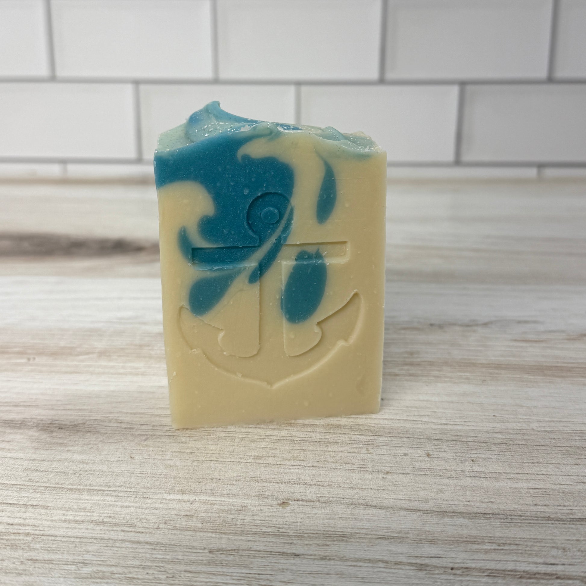 A Rhode Island favorite, this white and cerulean blue bar is infused with sea salt and jasmine fragrance and embossed with an anchor.